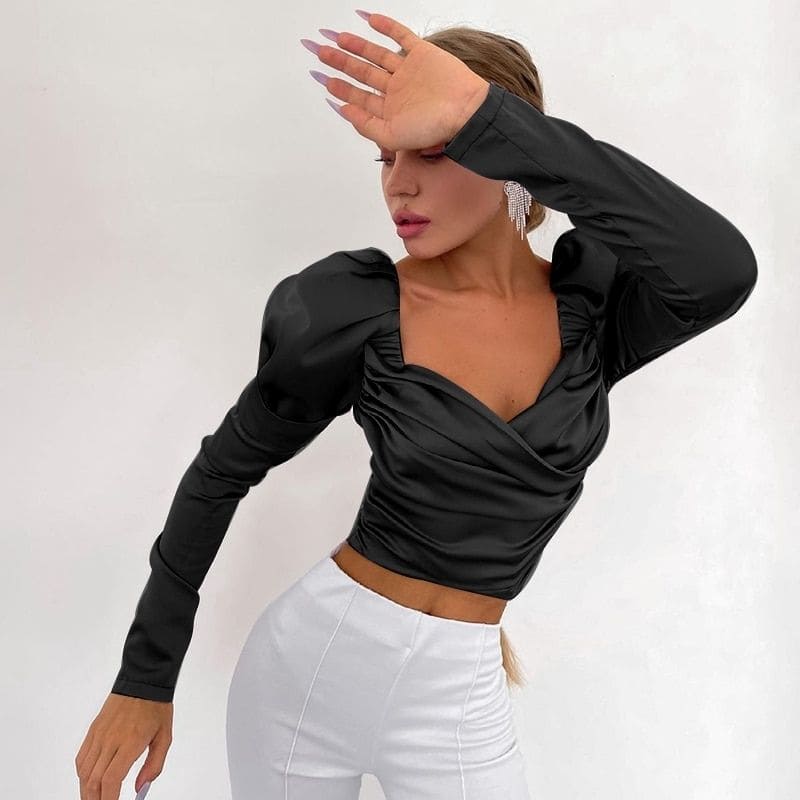 Blouse en Satin noire à manches longues