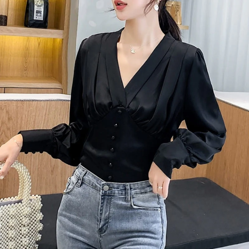 BLOUSE EN SATIN BOUTONNÉE DE COULEUR NOIR
