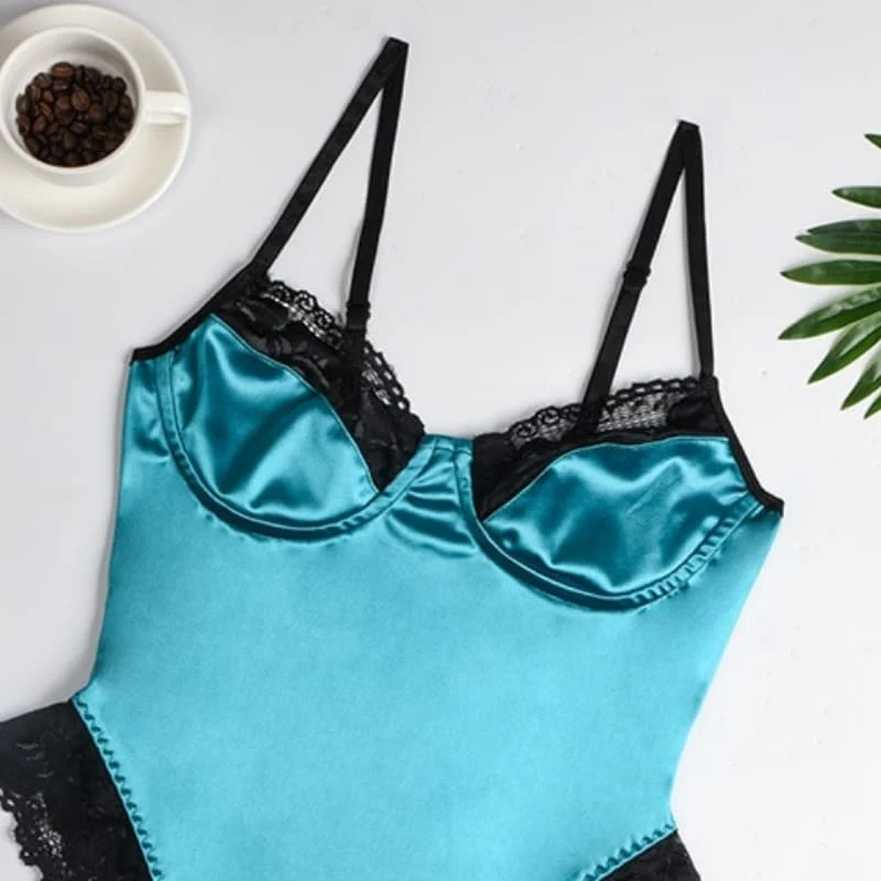 Pimentez vos nuits avec ce somptueux body en satin. Comment résister à cette belle couleur verte turquoise qui donnera de la vivacité à votre tenue et vous illuminera ? Votre corps sera mis à l’honneur, grâce à cette coupe moulante qui mettra parfaitement vos courbes en valeur. Quoi de mieux que cette dentelle noire pour ajouter une touche sensuelle ?