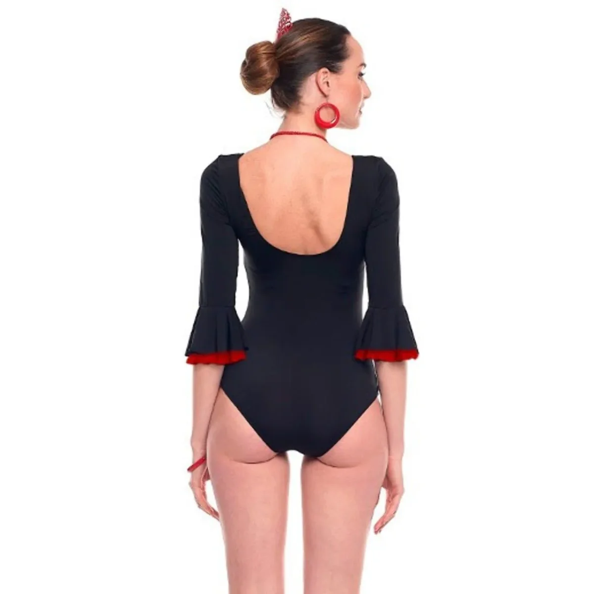 Body Flamenco Noir pour femme pour le carnaval et la Feria d’Avril. Achetez des accessoires pour les costumes de sevillana et dansez sans cesse lors de vos soirées flamenco. Découvrez notre catalogue d’accessoires pour compléter votre costume et devenir une véritable danseuse de flamenco.