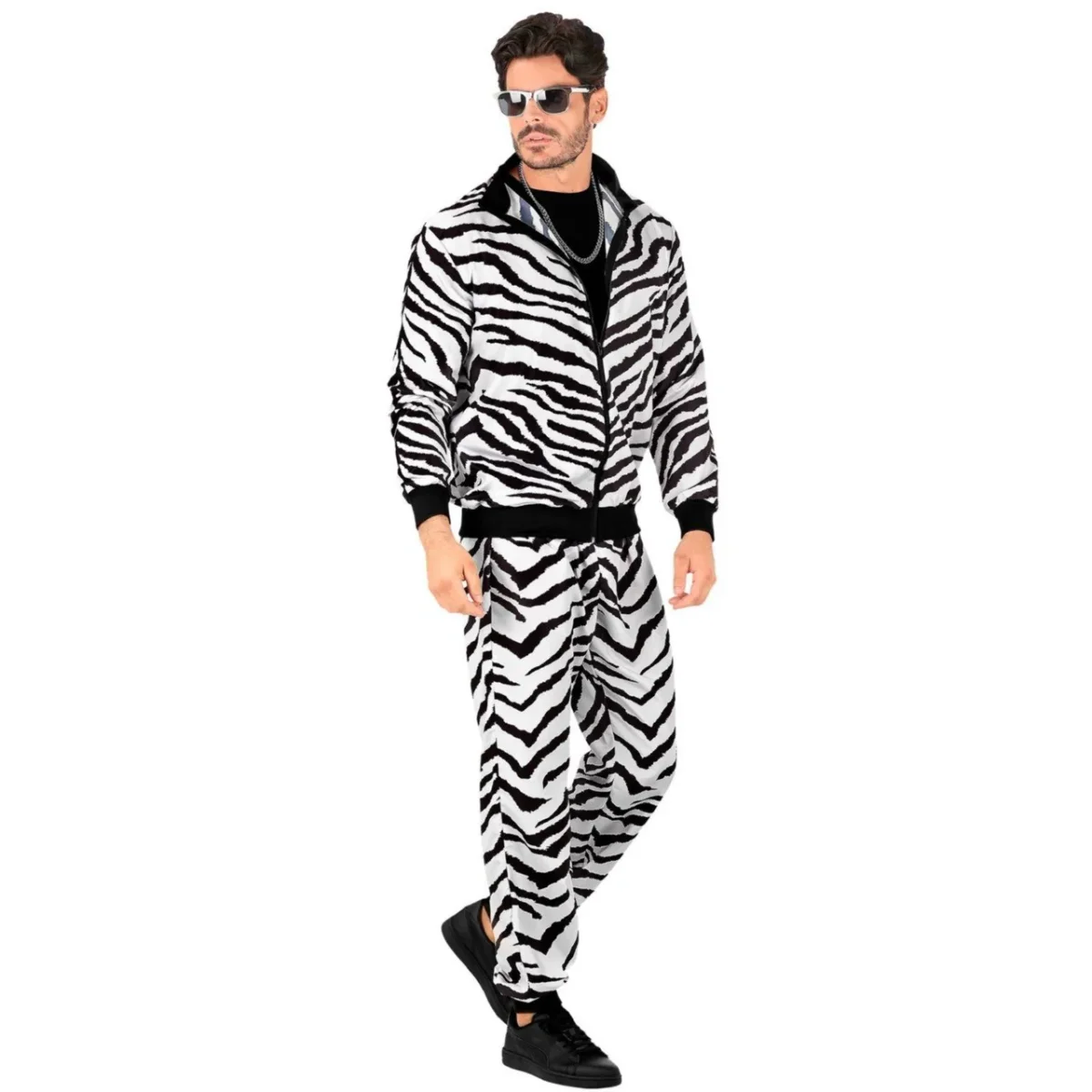 Déguisement Survêtement Zèbre Années 80 adulte pour Carnaval, pour vos soirées Rock et disco. Découvrez nos costumes des années 80, 50, disco et rock, accompagnez votre costume d’accessoires rétro et dansez non-stop lors des soirées sur les chansons de la décennie.