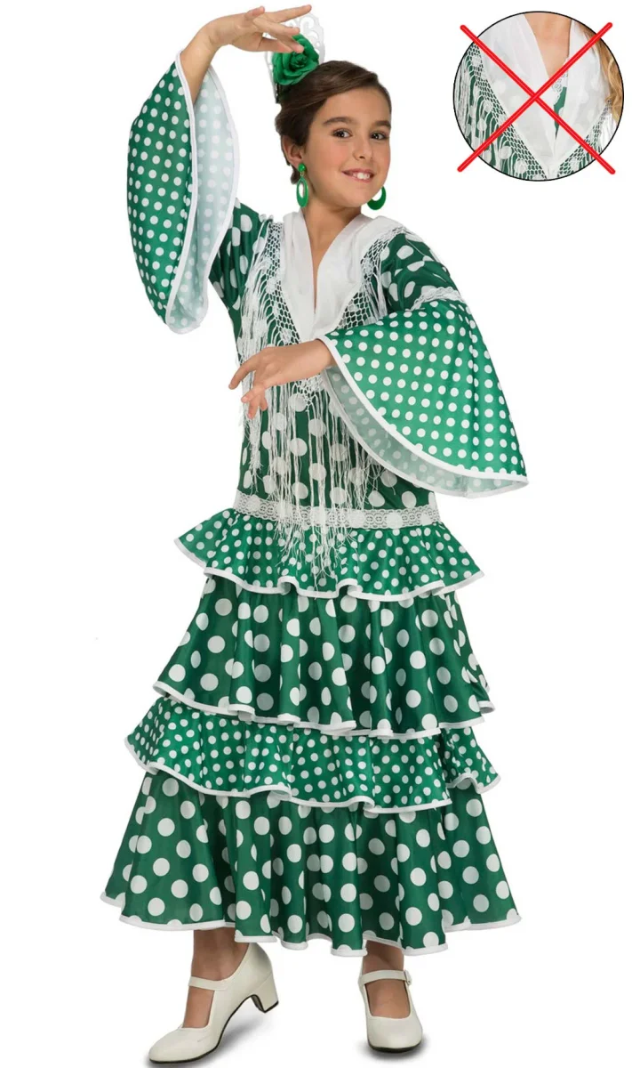 Avec ce déguisement Andalouse Alba Vert fille votre enfant dansera au rythme de la musique. elle sera la plus belle Andalouse du Carnaval ou des Fêtes à Thème.