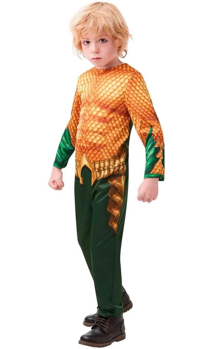 Déguisement Aquaman™ Classique pour enfant pour triompher au carnaval et les soirées à thème. Grâce à ce costume de super-héros, vous pourrez lutter contre les méchants et protéger l´humanité en utilisant vos super pouvoirs. Assurez-vous que tous les invités soient sains et saufs grâce à votre surveillance et protection.