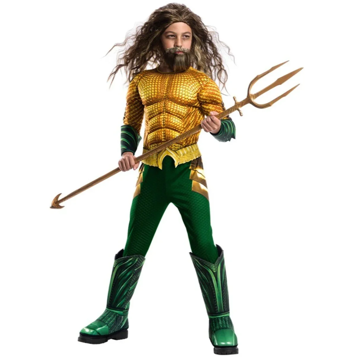 Déguisement Aquaman™ Deluxe enfant pour réussir dans les fêtes foraines et les soirées déguisées. Nous rêvons tous d’être des super-héros d’un jour. Avec nos accessoires et nos costumes, vous pouvez choisir le super-pouvoir que vous préférez. Pour vos fêtes de carnaval, achetez des costumes de super-héros et des accessoires dans notre boutique en ligne.
