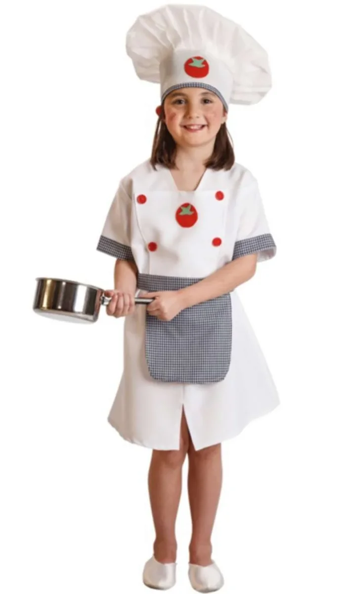 Une vraie petite chef! Ce déguisement de Cuisinière enfant est idéal pour éveiller la curiosité pour la cuisine des plus petits de la maison et les voir se transformer en de vrais professionnels des fourneaux pour le Carnaval, Fêtes des Écoles ou Anniversaires.