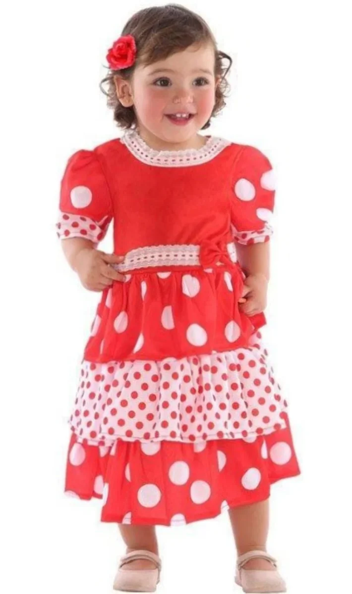 Déguisement de Flamenco Rouge pour bébé pour le carnaval et les fêtes à thème espagnol. Choisissez votre costume de sévillane ou toréro pour danser du flamenco lors d´une soirée à thème ou déguisée. Découvrez tous les déguisements espagnols et flamencos pour danser une sévillane et taconear avec votre robe de couleur à pois et volants.