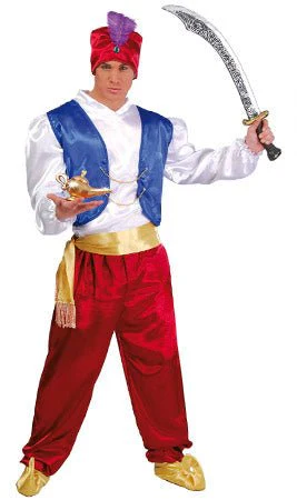 Déguisement Génie Oriental homme pour le carnaval et les soirées à thème. Choisissez votre déguisement du Moyen-Orient et Prochain-Orient et faites parti d´un pays Arabe pour connaître sa culture des mille et une nuit. Choisissez votre personnage entre Alibaba, Aladdin, Jasmine, un cheik ou une danseuse de ventre.