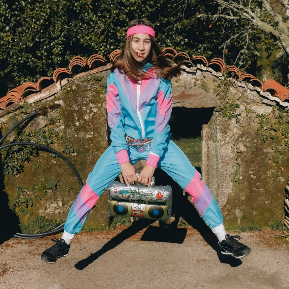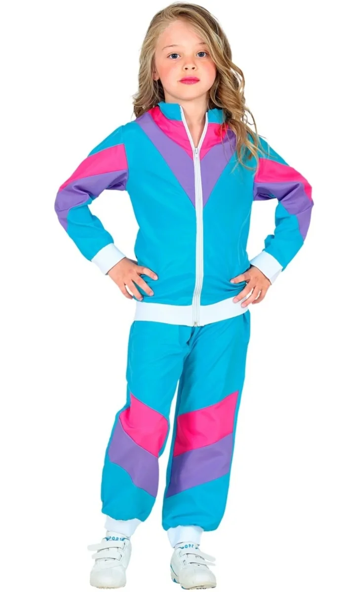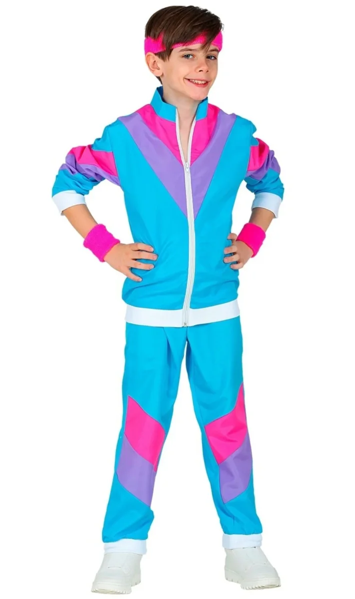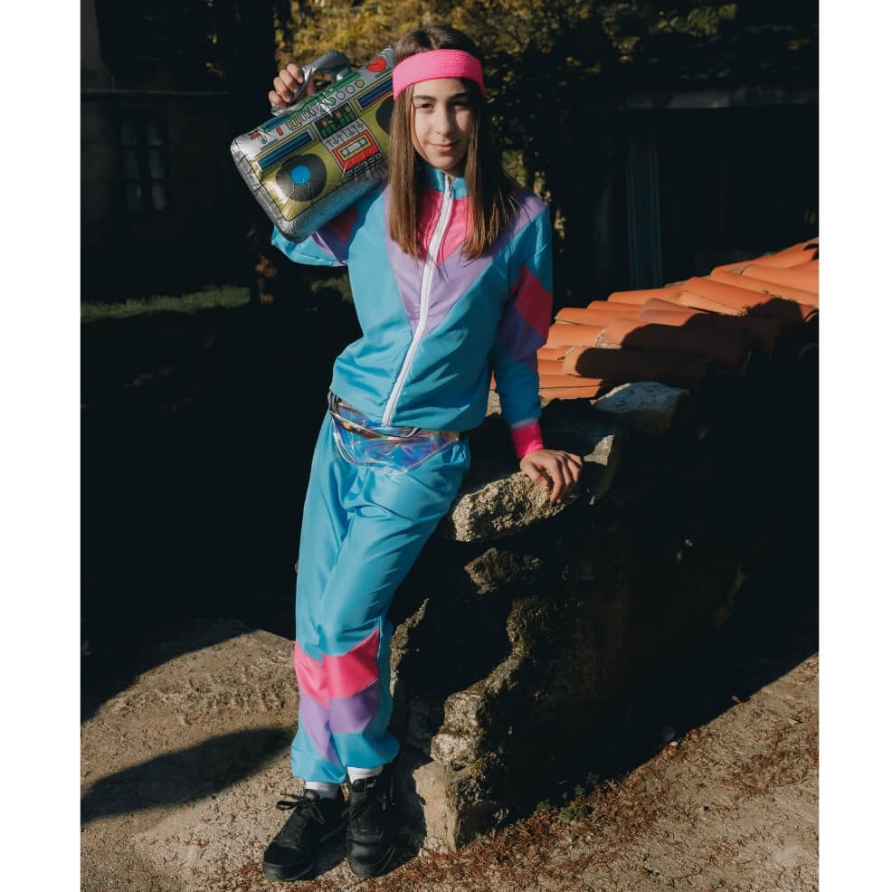 Déguisement Survêtement Bleu Années 80 enfant pour le Carnaval, pour vos soirées Rock et disco. Découvrez nos costumes des années 80, 50, disco et rock, accompagnez votre déguisement d’accessoires rétro et dansez sans relâche dans les boîtes de nuit avec les chansons de la décennie.