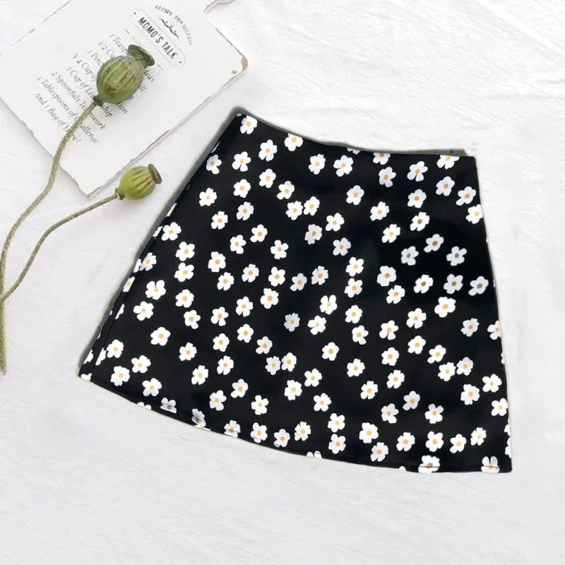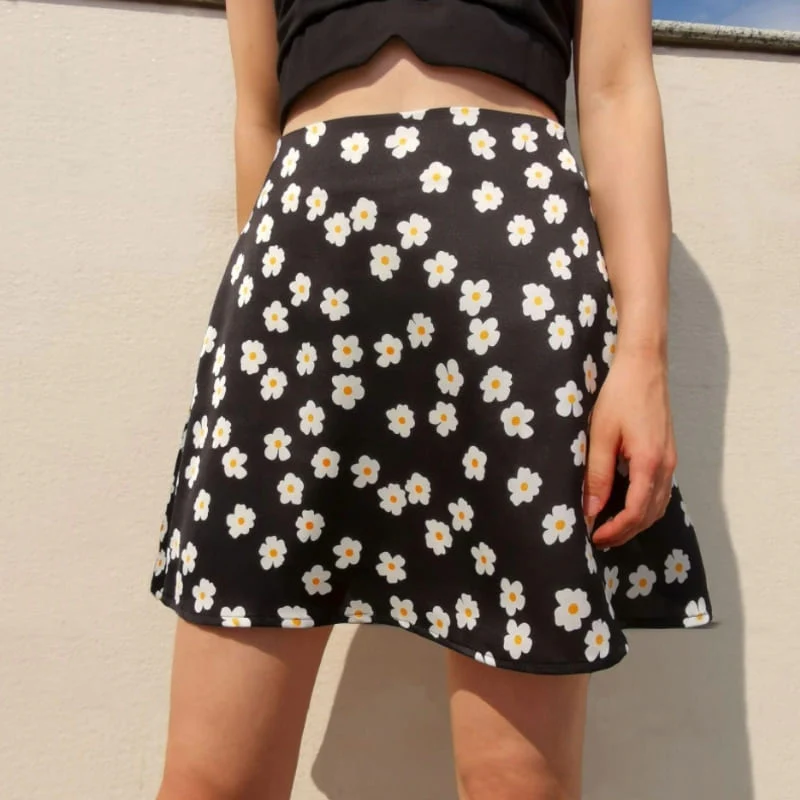 Apportez une touche super girly à votre tenue avec cette adorable jupe en satin ! Avec son mignon imprimé fleuri blanc style pâquerette sur fond noir, vous adoucirez votre look tout en restant sobre. Sentez-vous légère et aérienne grâce à cette coupe courte et fluide à la matière soyeuse. Un crop top s’associera parfaitement avec !
