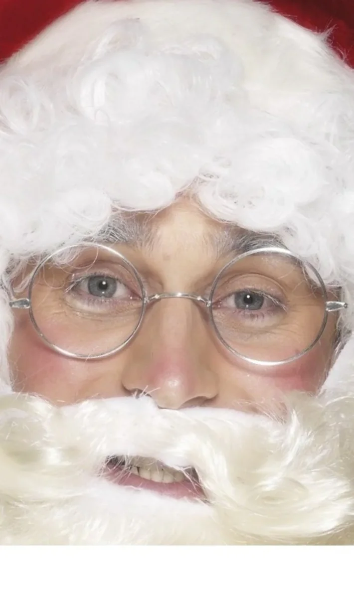 Lunettes Rondes Argentées pour Noël. Portez votre accessoire de père Noël ou mère Noël le soir de Noël et offrez les cadeaux fabriqués par les lutins au Pôle Nord. Les rennes, guidés par Rudolphe, vous aideront à voyager de cheminée en cheminée pour déposer les cadeaux sous le sapin de Noël.