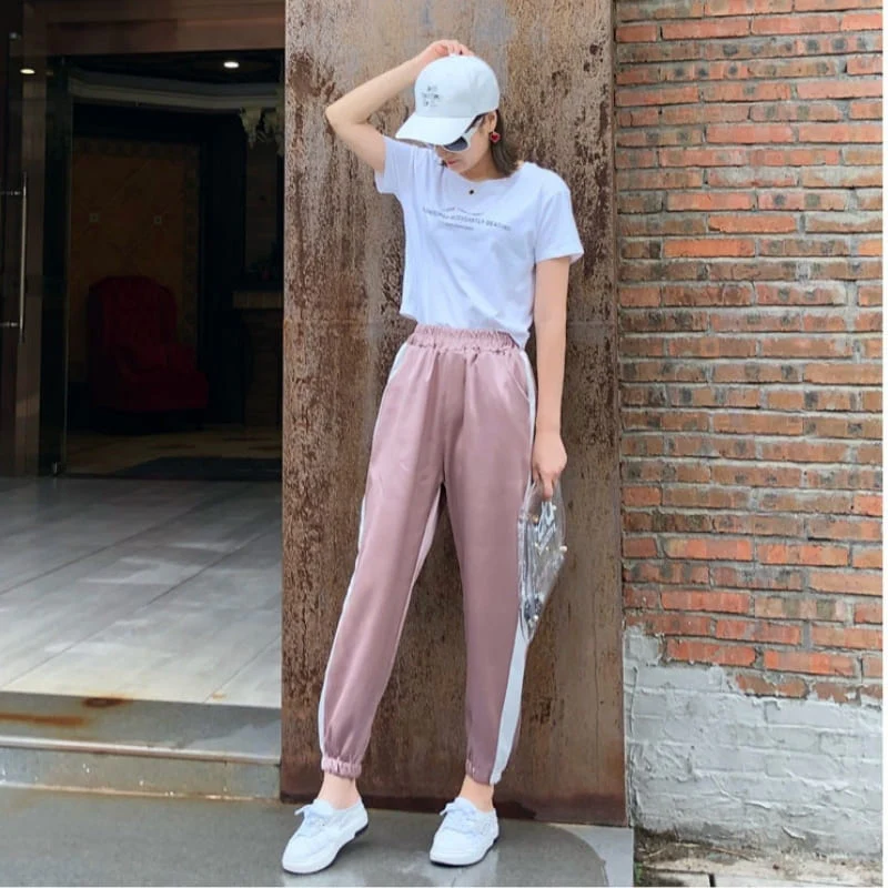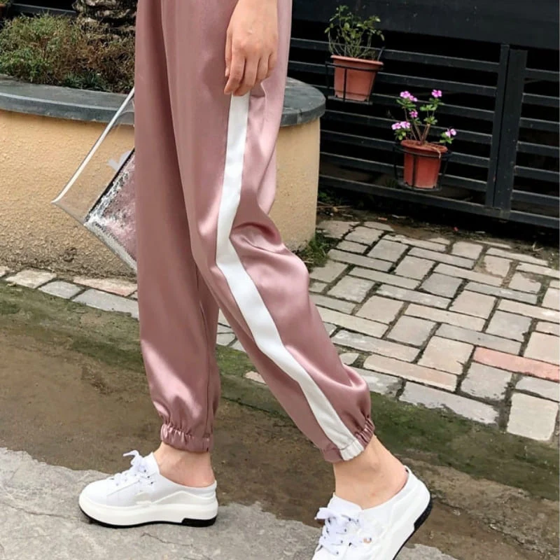 Apportez une touche girly à votre look street avec ce mignon pantalon en satin. Cette jolie couleur rose poudrée satinée apportera de la douceur à votre tenue. Vous ne vous saurez jamais sentie aussi bien qu’en portant cette délicate matière soyeuse et légère. Cette coupe jogging vous laissera également cette sensation de liberté. Les bandes blanches sur les côtés viennent donner ce détail super tendance en plus.
