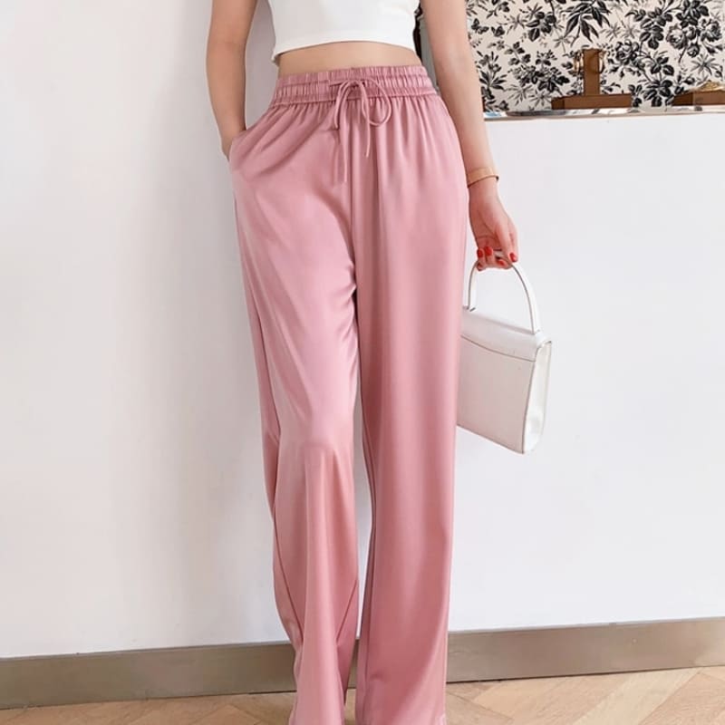 PANTALON EN SATIN DE COULEUR ROSE CLAIR