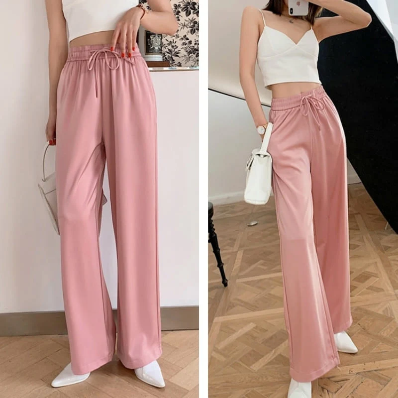 Apportez légèreté et élégance à votre look avec ce somptueux pantalon en satin. Cette magnifique couleur rose clair satinée vous donnera ce côté chic et féminin. Vous adorerez l’effet aérien qu’il vous procurera grâce à sa coupe fluide et ample. Votre taille sera marquée grâce à un élastique. La ficelle vous permettra de resserrer ou desserrer à votre guise.