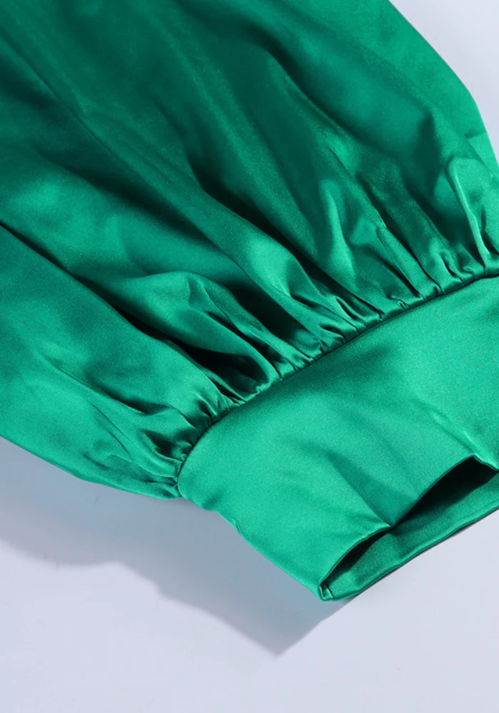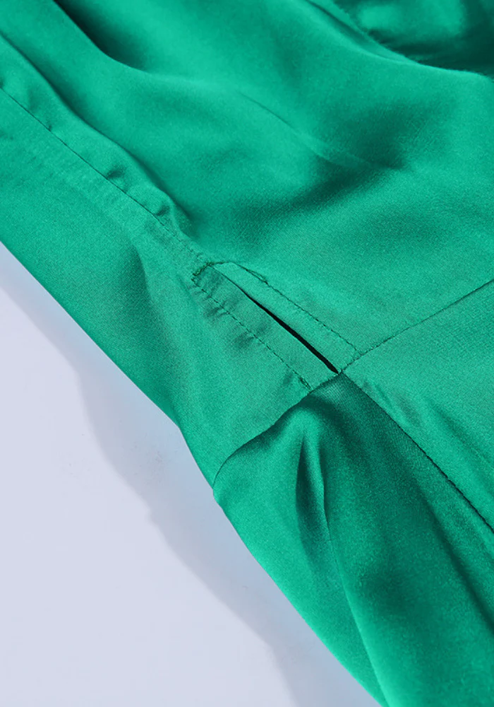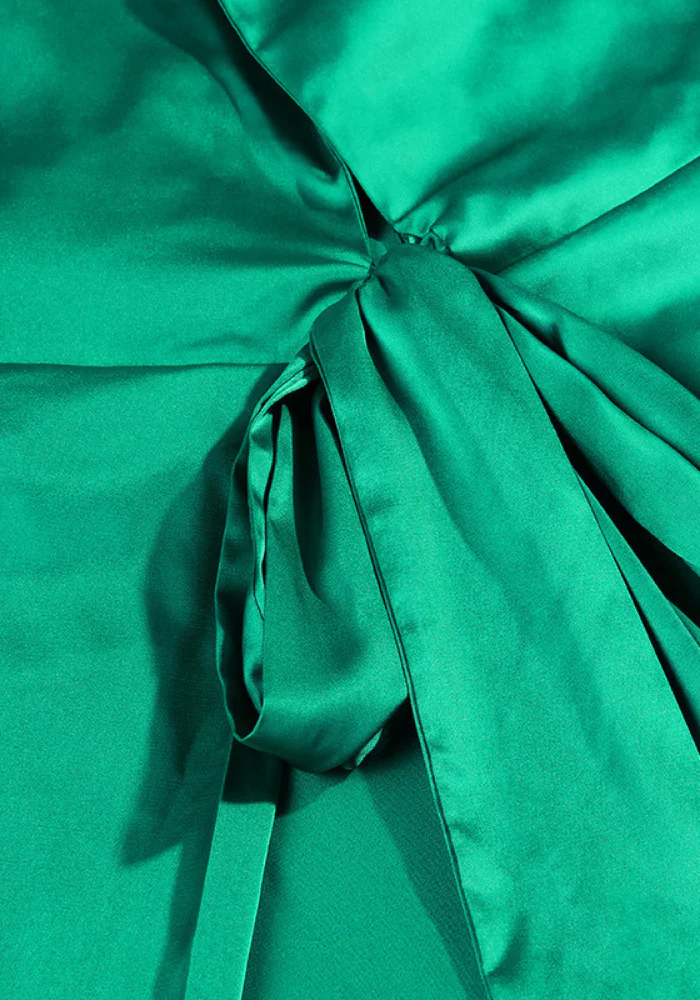 Robe en satin croisée de couleur verte